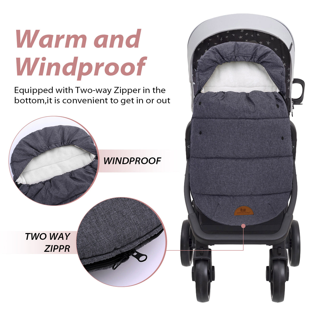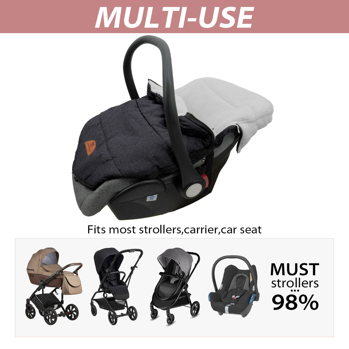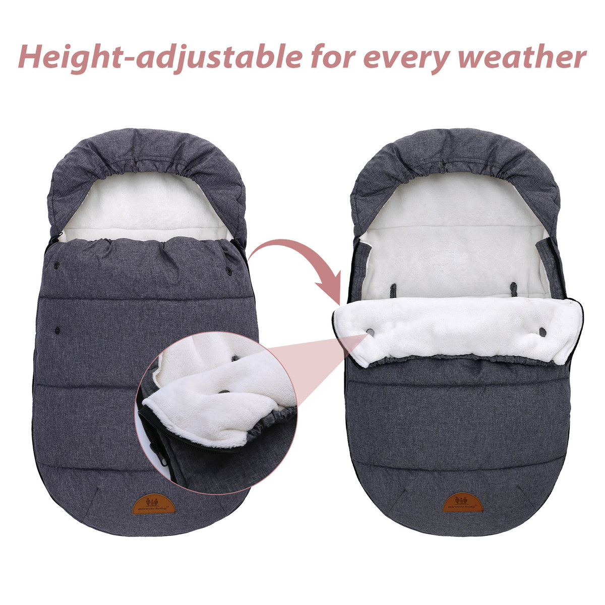 - 【Ultra Large Size】 The baby bunting bag is suitable for most high landscape cars, umbrella cars, and light cars. Dimensions are 73*45 cm/28.7*17.7 inches. These infant winter car seat covers have expanded length and width. Equipped with positioning notches for flexible adjustment and easy and secure fit with the stroller. Even on freezing days, your child can sleep comfortably and move around freely in the stroller, or just enjoy the outside world.