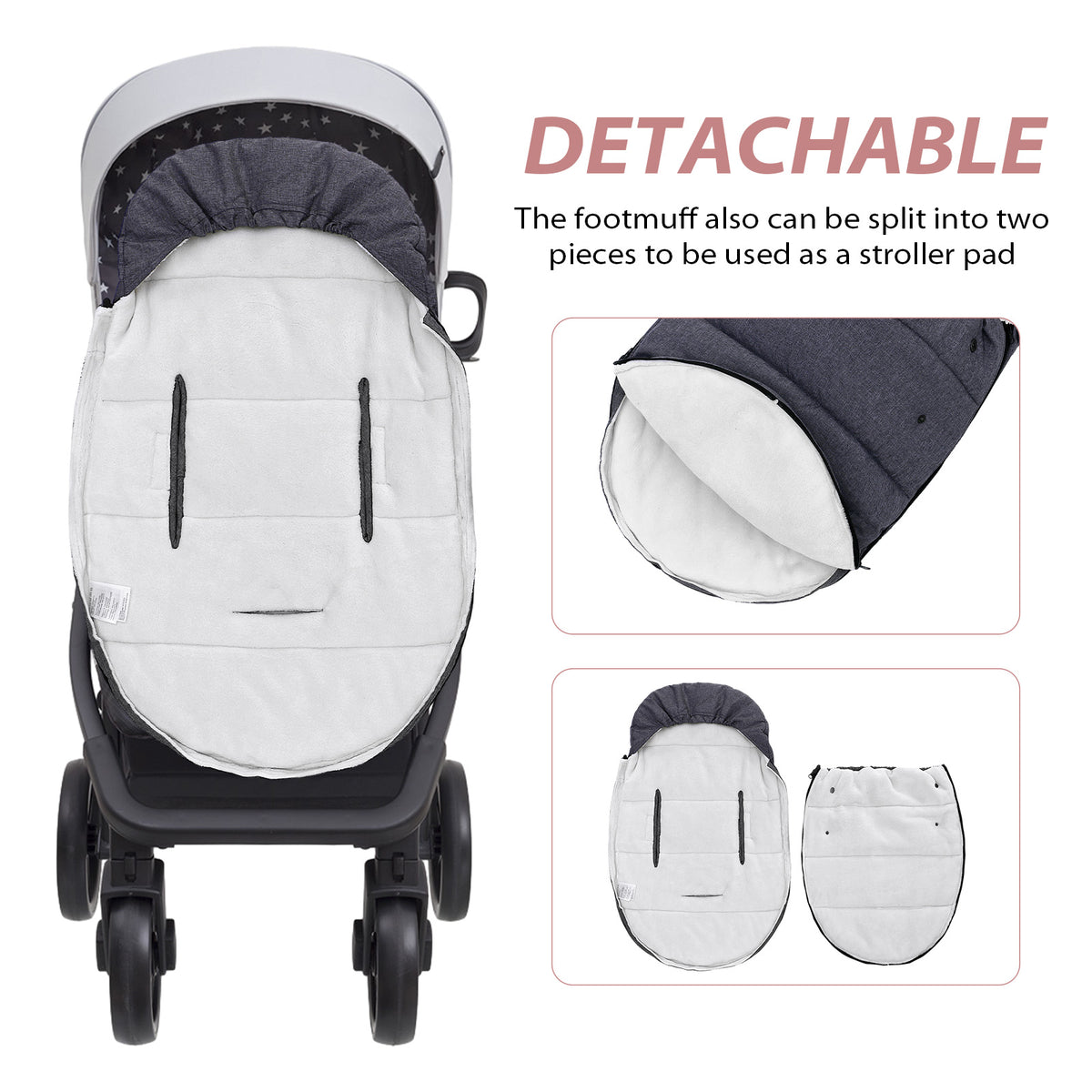 - 【Practical Zipper & Button Design】 You can adjust the zipper according to specific weather conditions and flexibly control your baby's body temperature. The exquisite button design keeps you warm when fastened on the hat, and dissipates heat when the collar is opened and fastened. This stroller sleeping bag can quickly complete baby care tasks such as changing diapers and shoes without taking the baby out of the muff.