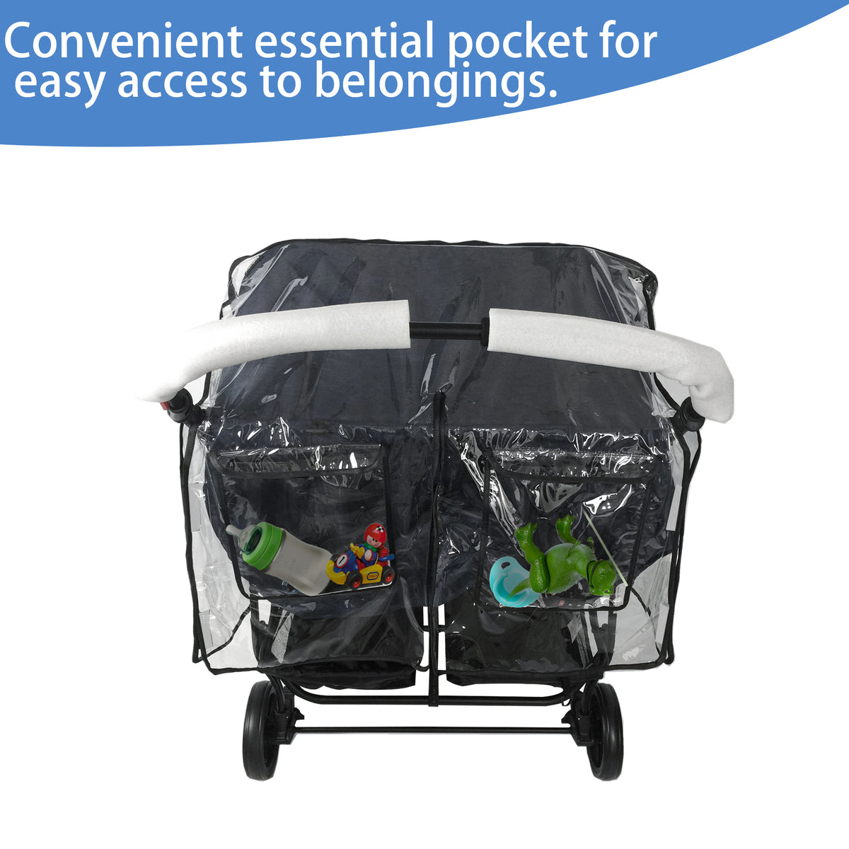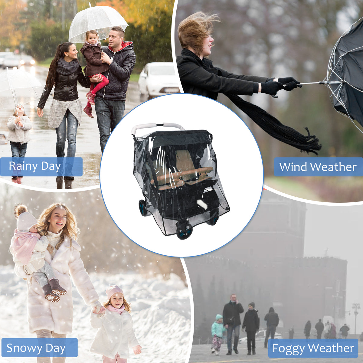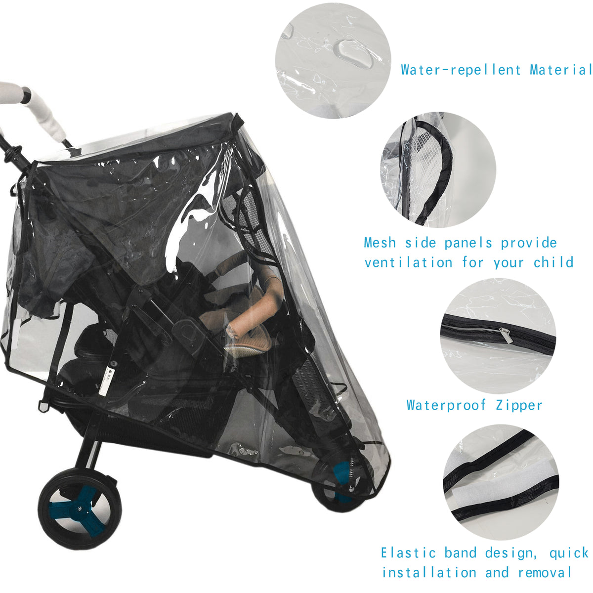 - FIT MOST STANDARD-SIZE DOUBLE BABY STROLLERS: Our stroller rain cover is designed to fit most standard-sized double baby strollers. Note: This product maybe too big for compact or umbrella type strollers.