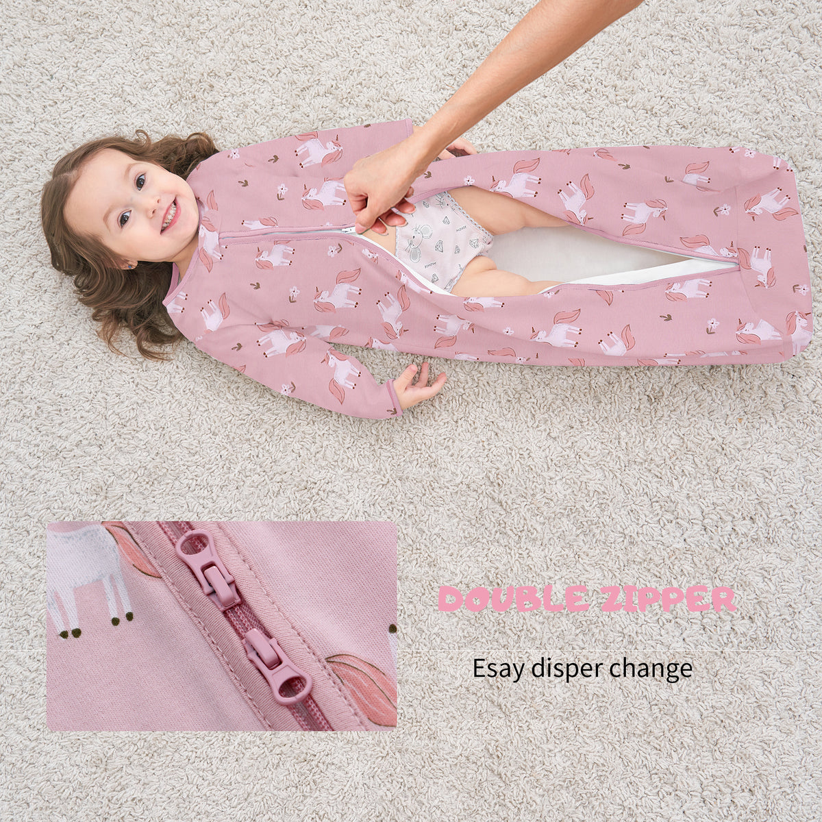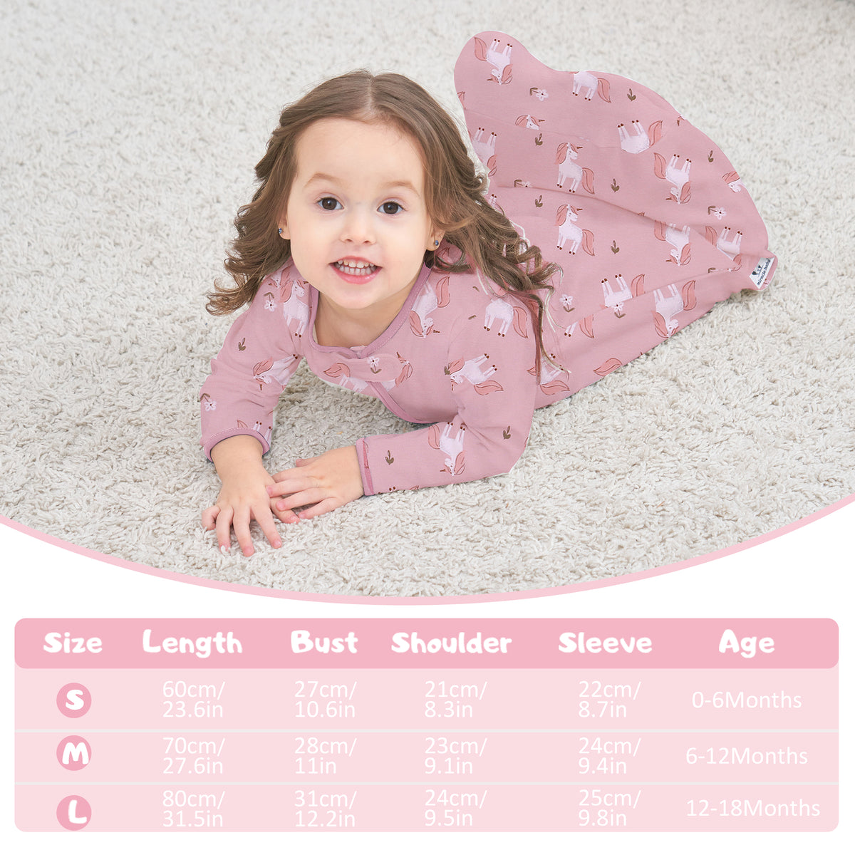• 【100% Cotton Surface】Sleep sack long sleeve is 100% cotton inner and outer layers, which makes the miracle baby sleep bag super soft, cozy and breathable. No harsh chemicals or dangerous dyes are used, meaning this toddler sleeping bag is safe and gentle on your little one's sensitive skin.