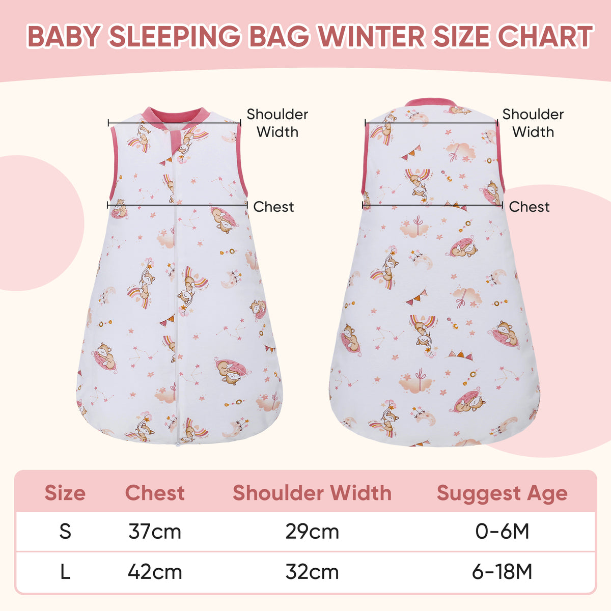 - SIZES AVAILABLE: Our baby wearable blanket available in 2 sizes, S 0-6 Months/L 6-18 Months;