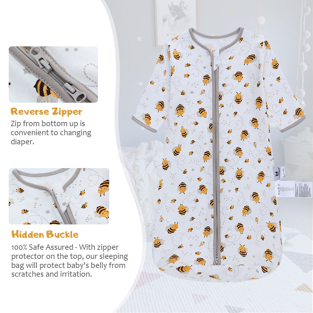Soft Organic Cotton Baby Sleeping Bag - Wearable Blanket for Infants & Toddlers, Four Season Warm Sleep Sack with 2-Way Zipper, Easy Diaper Changing
