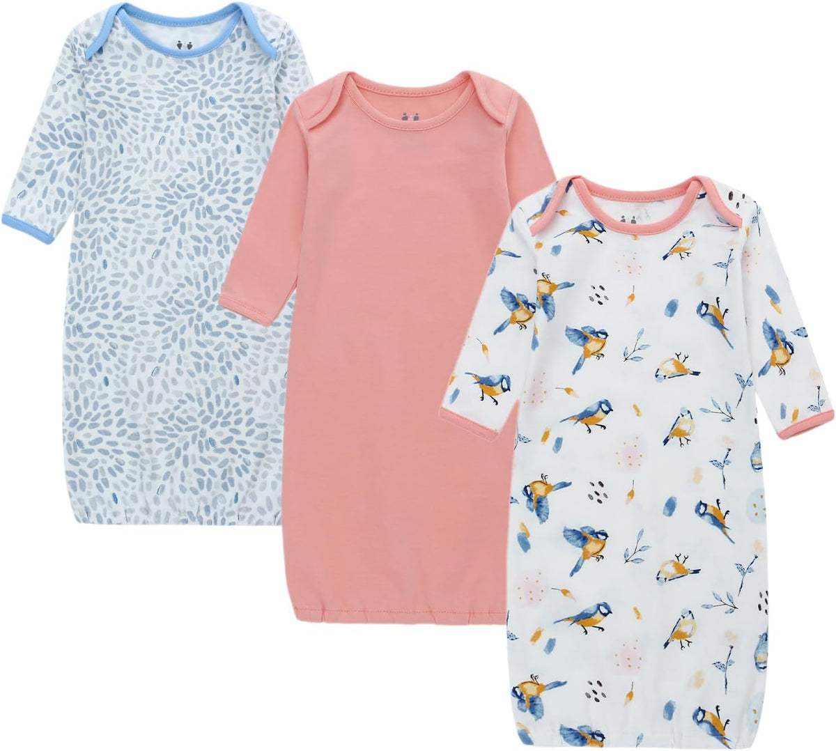 Baby Newborn Gown, 3 Packs Baby Sleeping Bag, Long Sleeve Sleep Sack, Cotton Cloths for Newborn Boys Girls