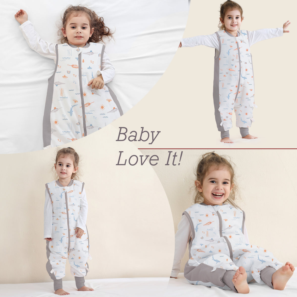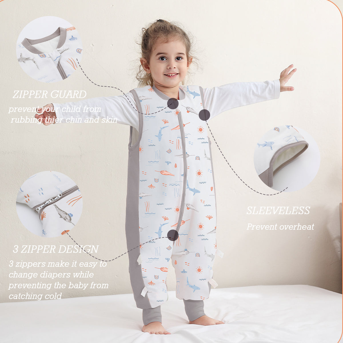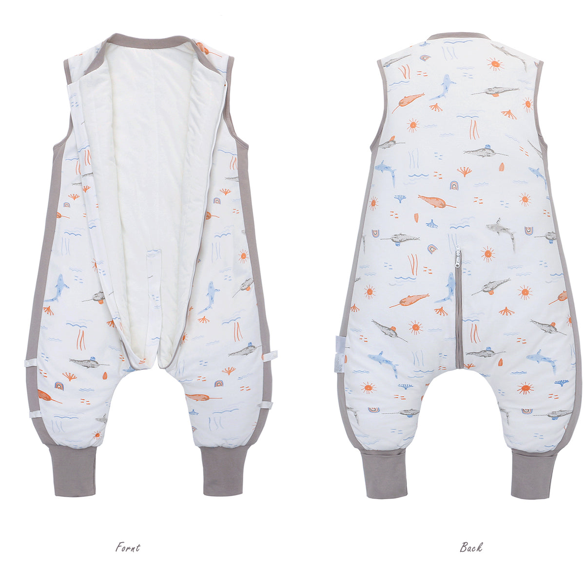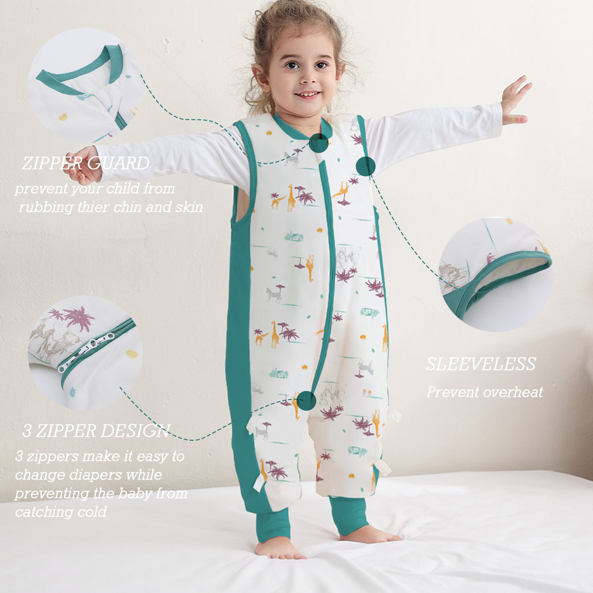 - 【Separate legs & Wrapped foot】 Separate legs facilitate the movements of the baby. Not only Make baby Comfortable and flexible to stand, crawl, walk. but also warms up in the winter night.Loose legs give baby more room to move. Legs with wrapped feet design. The leg pockets can be turned inside out to wrap around the feet for extra warmth.