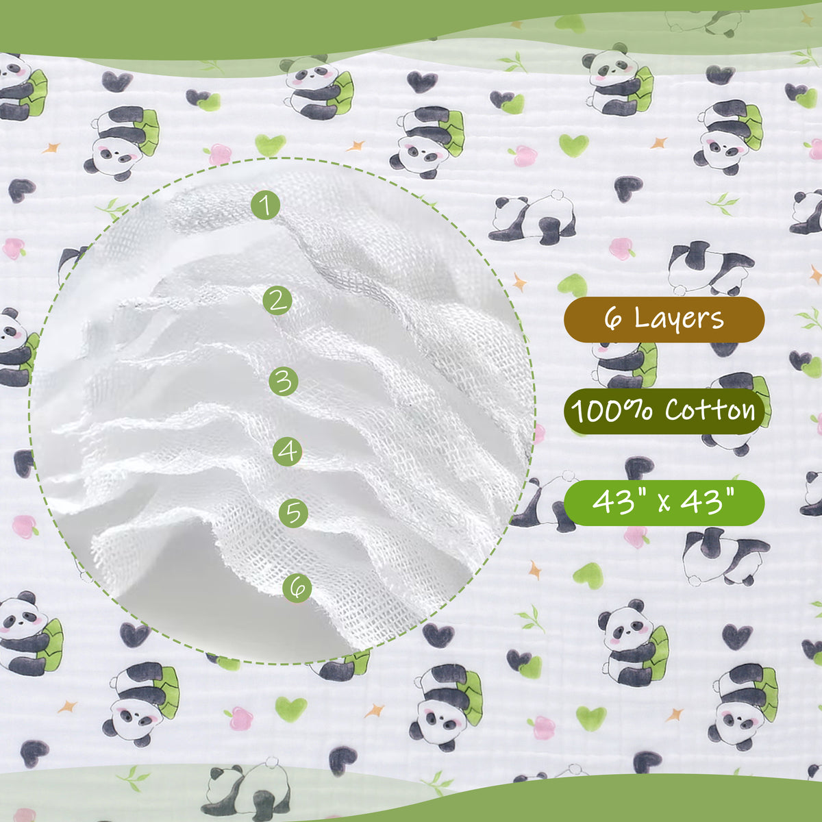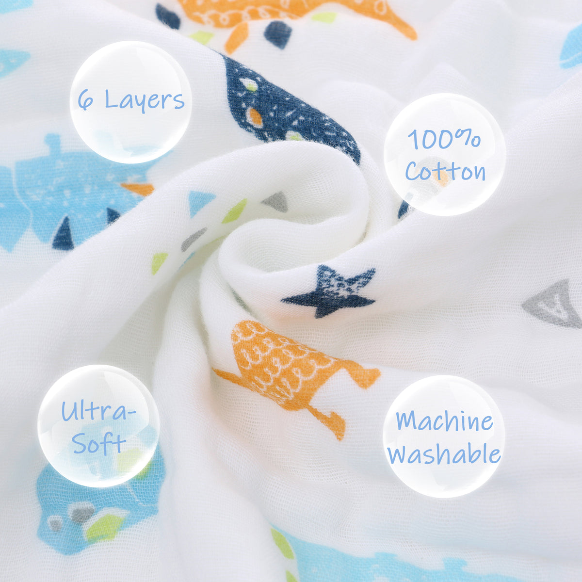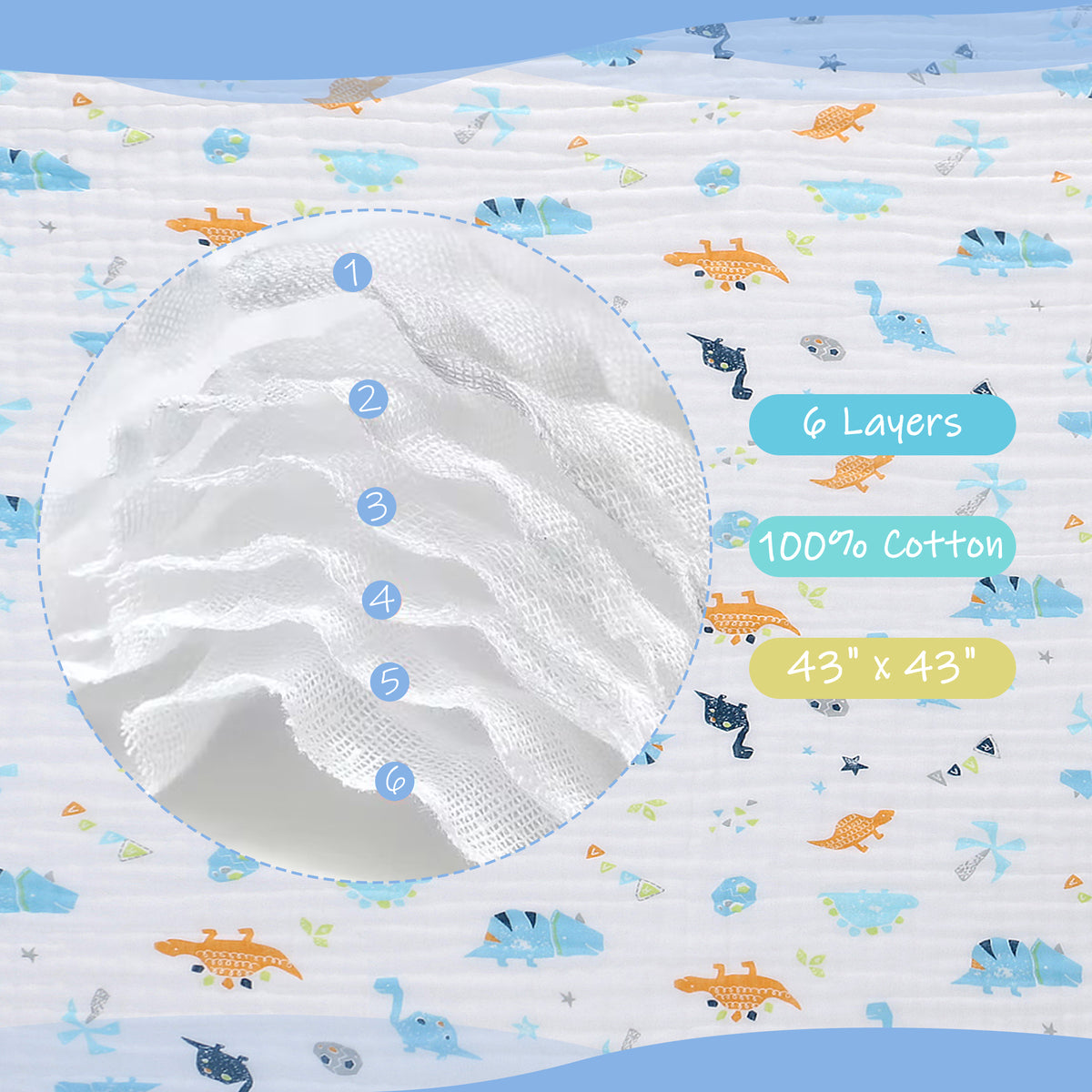 - [100% Cotton Muslin Blanket] Our baby muslin blanket is made of 100% muslin cotton that is pre-washed and gets softer with ever wash. 6 lightweight layers of muslin for extra softness and added warmth without bulkiness.