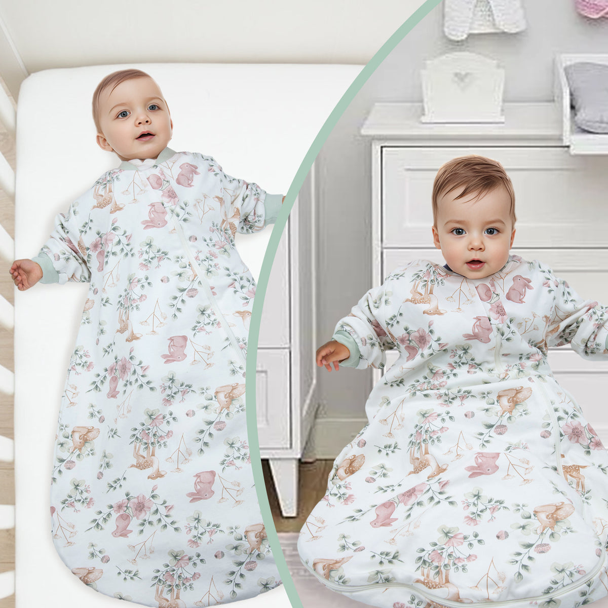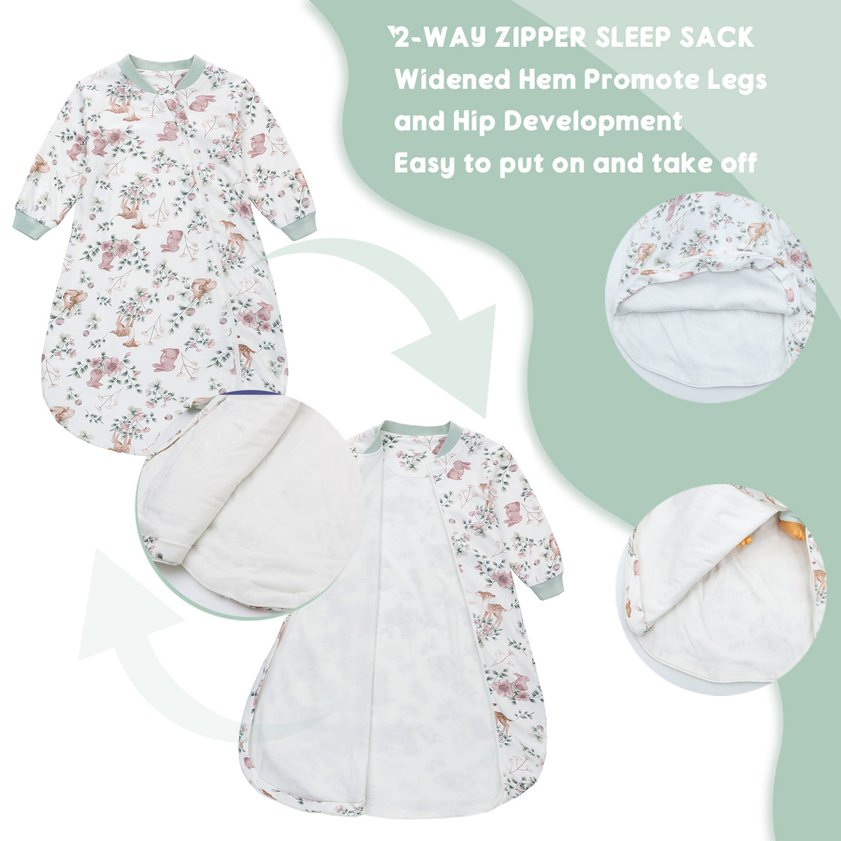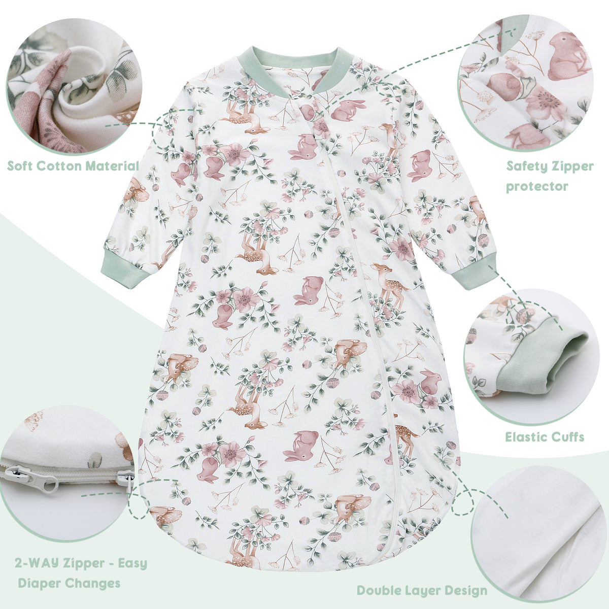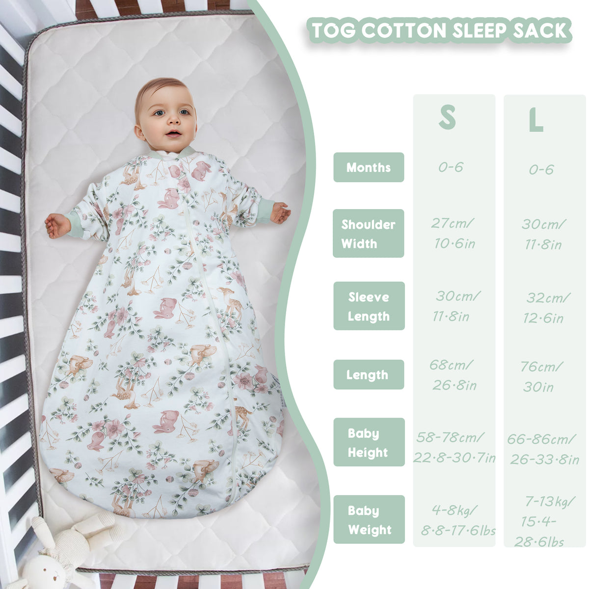 - SUITABLE FOR ALL YEAR ROUND: This long sleeve sleep sack is made of soft cotton material that gets softer with every wash. Keep your baby cozy and comfortable throughout the year with our 1.5 TOG baby sleeping bag.