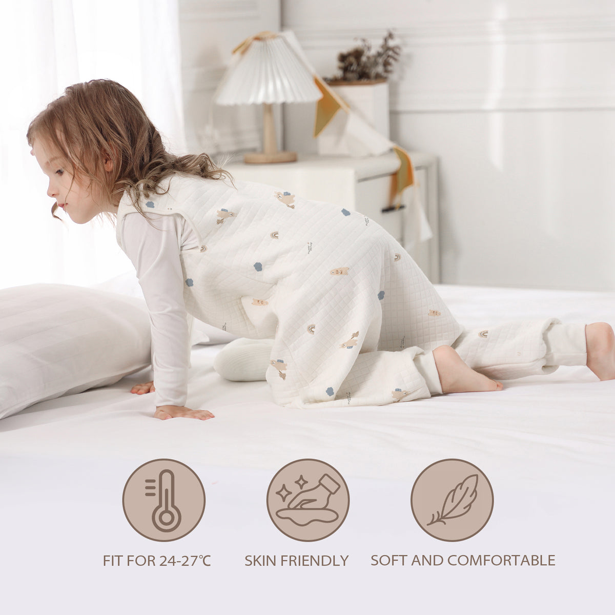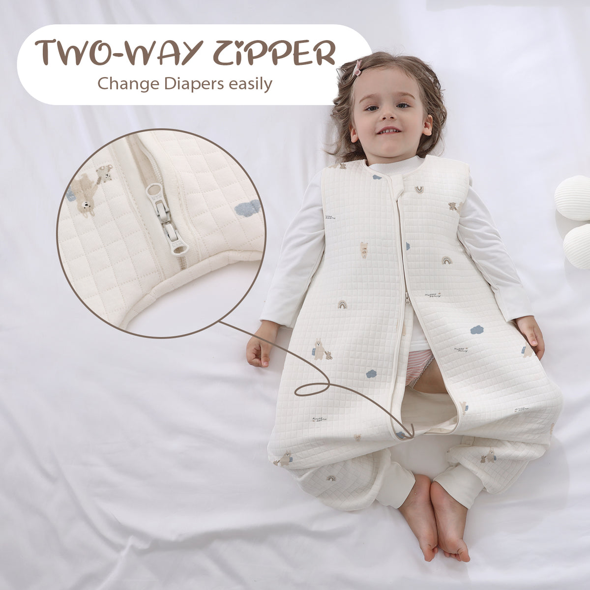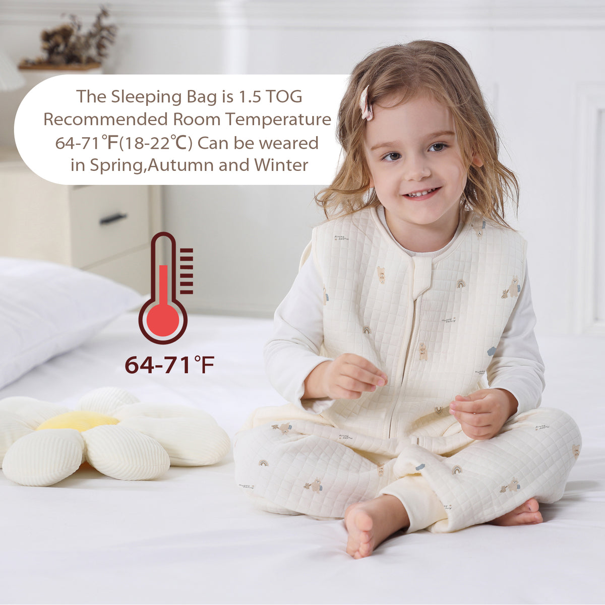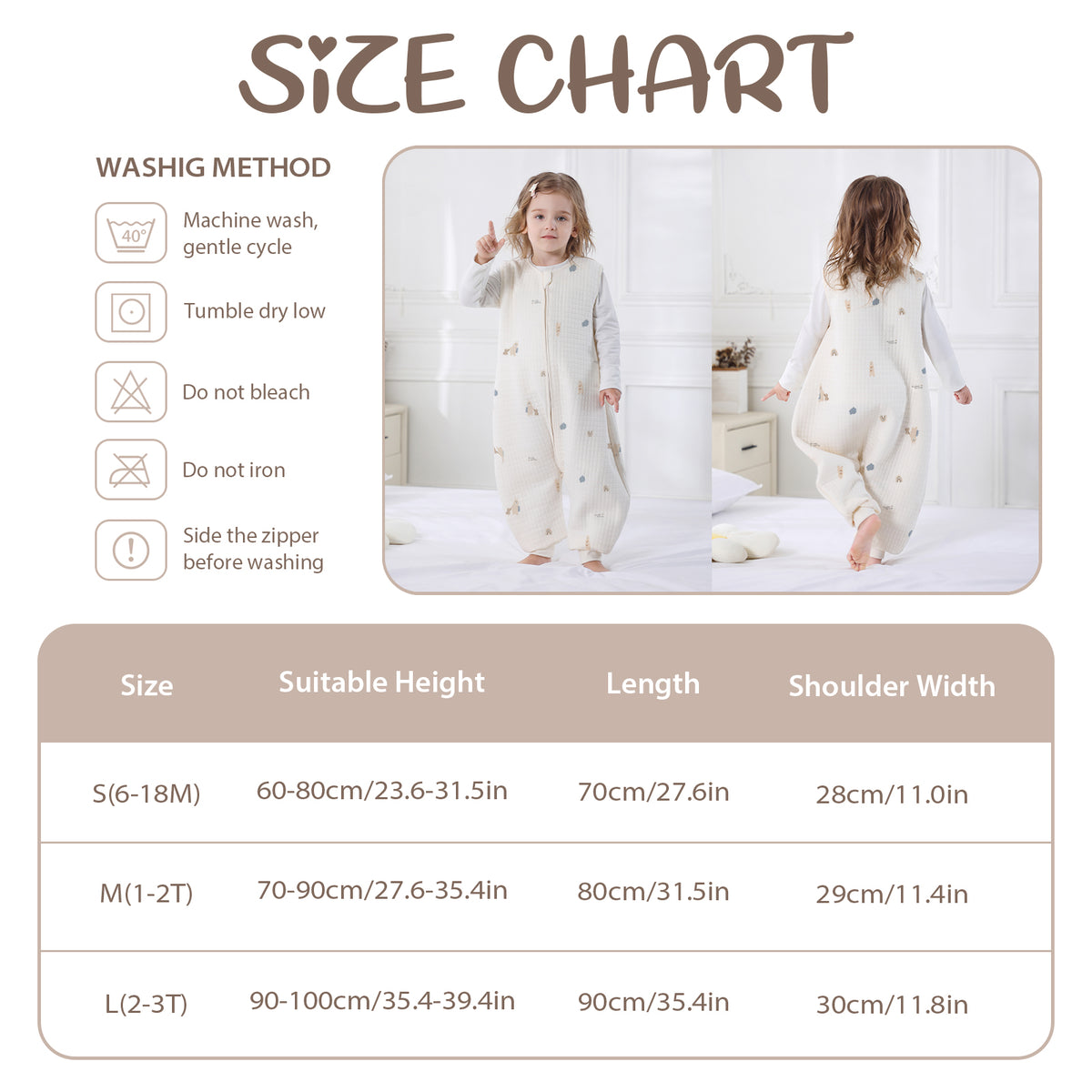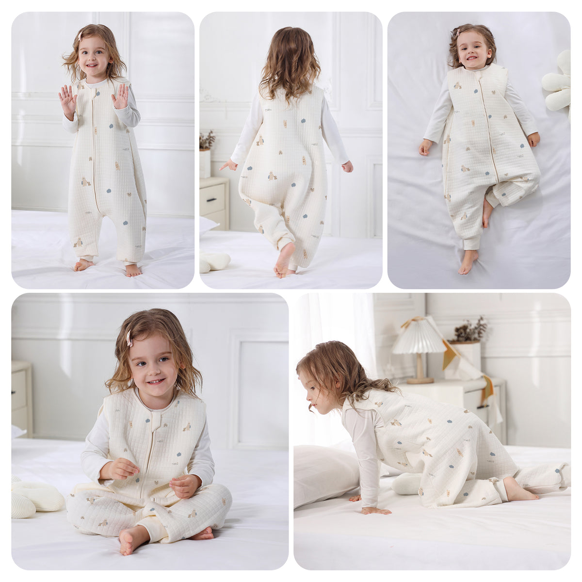 - SPLIT-LEG DESIGN: The toddler sleep sack with feet allowing for freedom of movement in your lower extremities. This design enhances comfort and convenience, allowing you to easily turn, stretch, and move while sleeping.